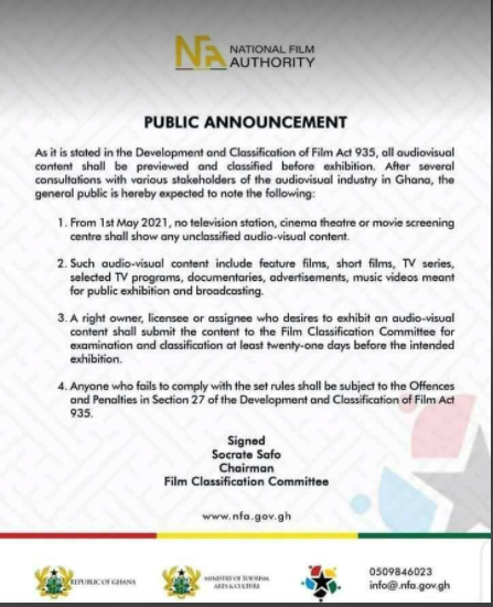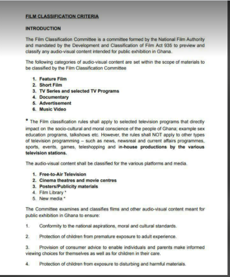 In view of the above the National film authority has been working tirelessly to ensure some of the audio visual contents which are shown on Ghanaian free to air Television station are barred.