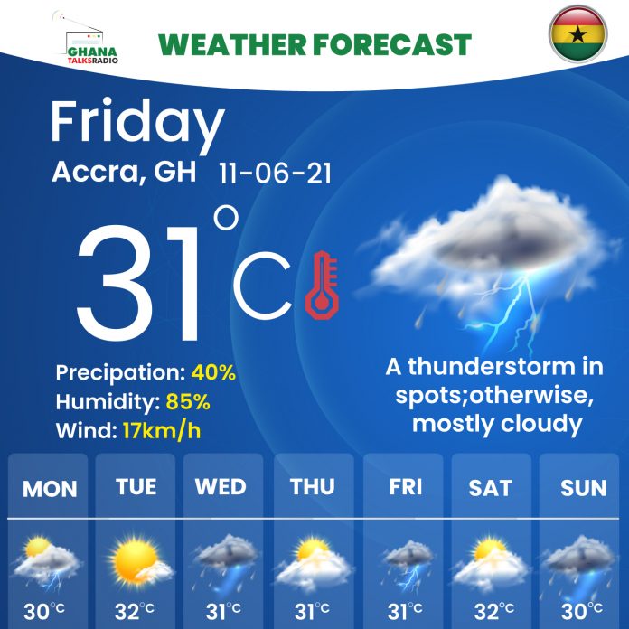 A morning thunderstorm in one or two spots; otherwise, cloudy