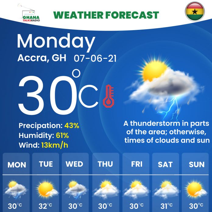 Periods of clouds and sun with a thunderstorm in parts of the area
