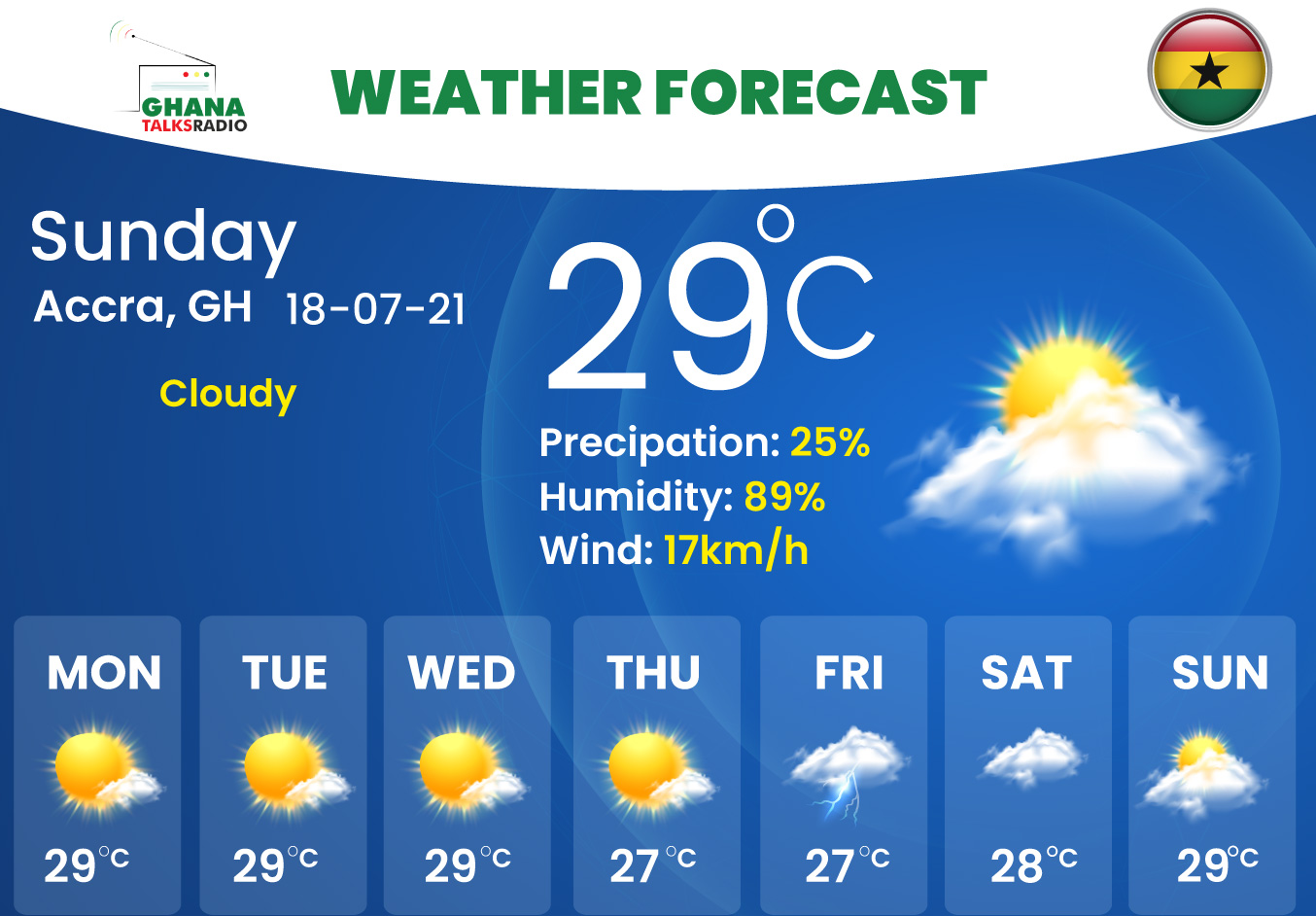 Your daily weather forecast for Ghana.