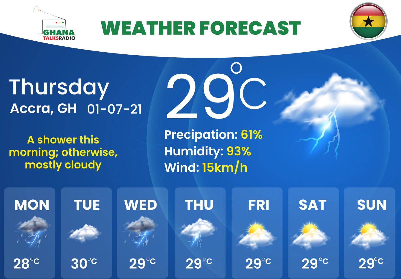 Your daily weather forecast for Ghana.