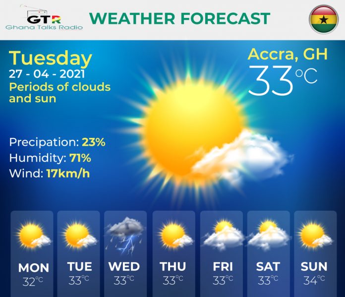 Sun and areas of high clouds this morning, then mostly cloudy this afternoon with a thunderstorm