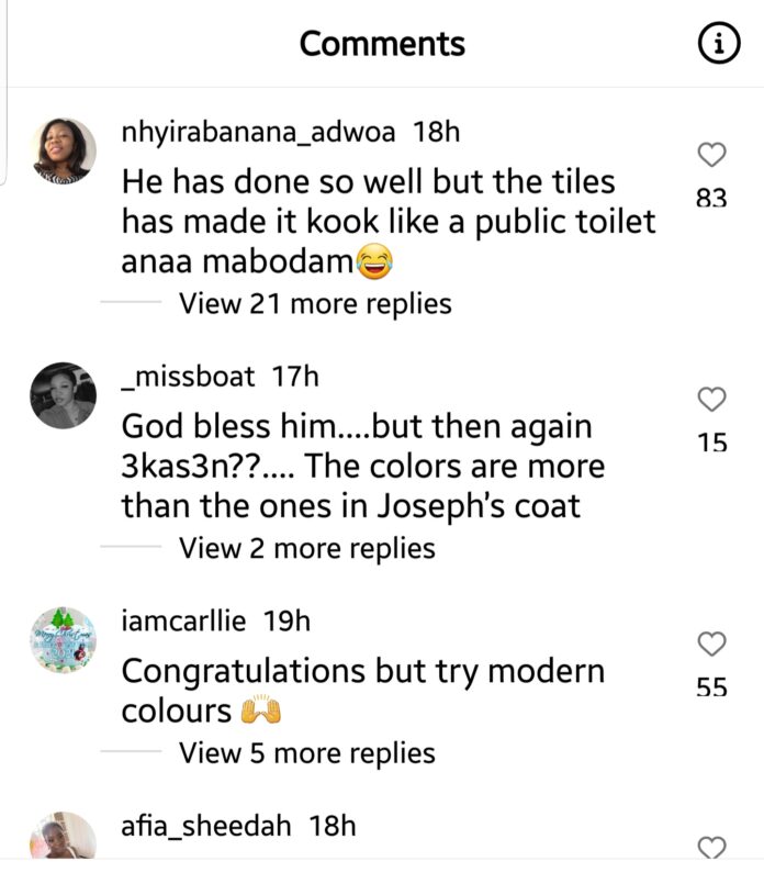 One critic even compared the house’s appearance to a public toilet. Despite the negative comments, Lilwin’s gesture has been commended as a heartwarming display of love and appreciation for his mother.
