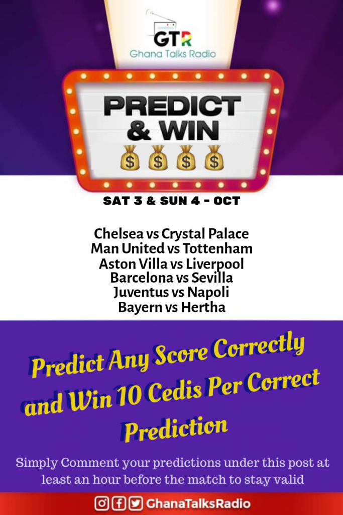 ![[Predict & Win – 2nd] WIN A Guaranteed ¢200 From Us This Week](https://wordpress.ghanatalksradio.com/wp-content/uploads/2021/09/maxresdefault-50-100x70.jpg)
