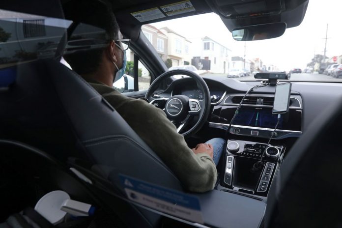 The company’s all-electric Jaguar I-PACE SUVs initially are serving the more residential western and southern portions of the city, including Richmond and Bernal Heights. Operators are in driver’s seats with hands on their knees – but prepared to steer in an emergency.