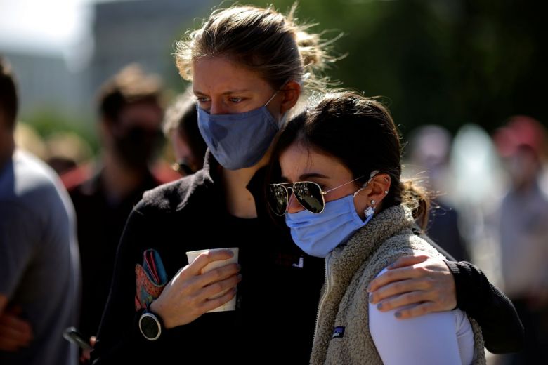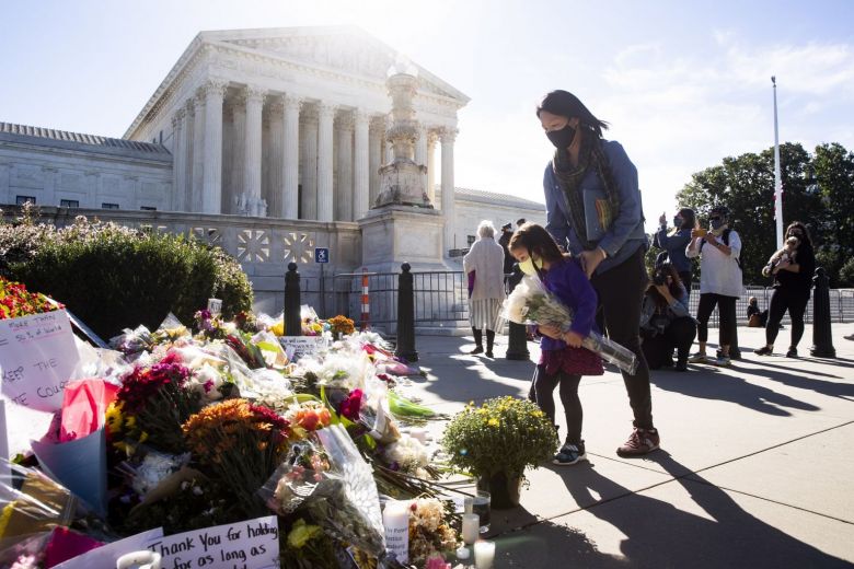 Grief-stricken Americans gathered at makeshift memorials around the country on Saturday to mourn the death of liberal, feminist icon Justice Ruth Bader Ginsburg, while politicians and Hollywood celebrities paid tribute online.