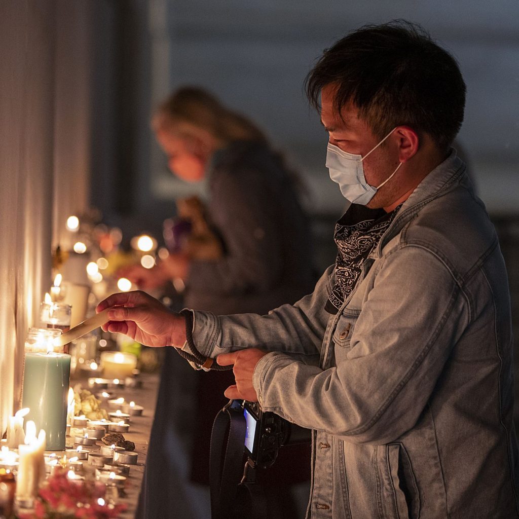 “It just feels so nice to be out here with other people who feel the same way,” said Dominik Radawski, 46, standing on the steps that are often the site of boisterous shouting matches when the court hears arguments on sensitive cases. “There’s no one here being angry. It’s this sense of quiet contemplation, this sense of respect.”