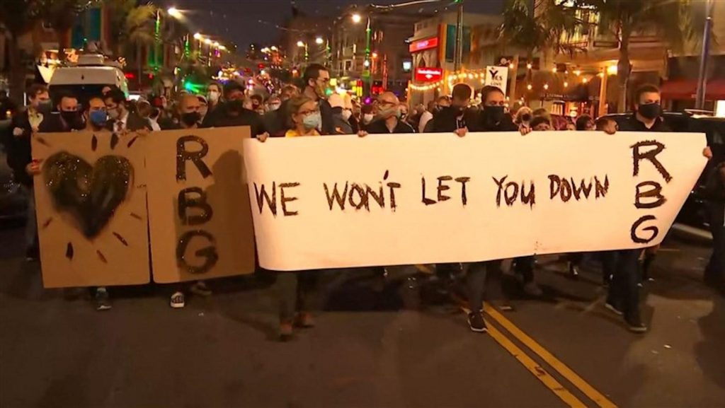 In liberal San Francisco on Friday night, more than 200 mourners held a candlelight vigil and marched through the city’s Castro district carrying a large sign that said “We won’t let you down RBG.”