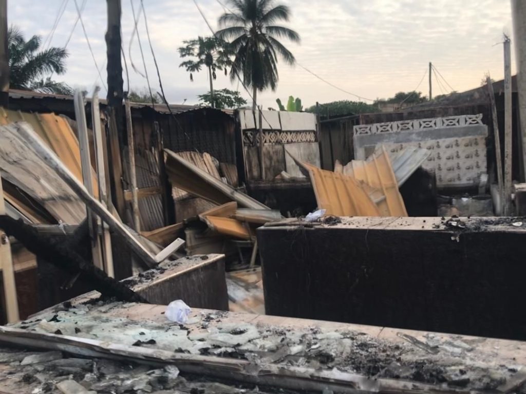 A devastating fire has destroyed several businesses near Nogora Junction, just a few meters from Ho Technical University, with affected shop owners pointing fingers at intermittent power outages — locally called dumsor — as the likely cause.