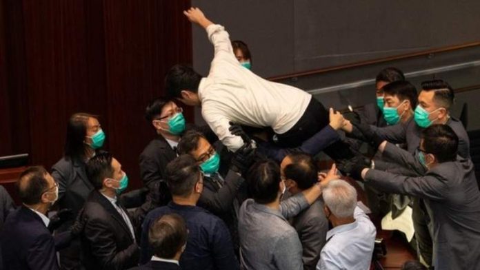 One of the lawmakers carried out, Eddie Chu, told the BBC: “If Hong Kong was a democracy, we would not need to start scuffles like this.”