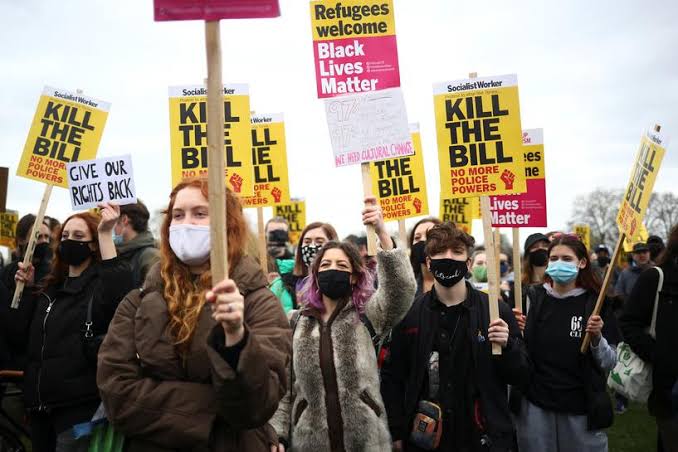 The Police, Crime, Sentencing and Courts bill would toughen measures officers can take to disperse demonstrations, such as imposing time and noise limits, which campaigners and activists fear would be used to curb dissent.
