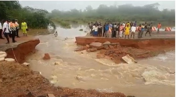 A section of the Cape Coast-Fosu-Kumasi Highway (N8) has caved in after a heavy downpour at Akomfode, near Assin Andwa in the Assin North District of the Central Region, making vehicular movement difficult.