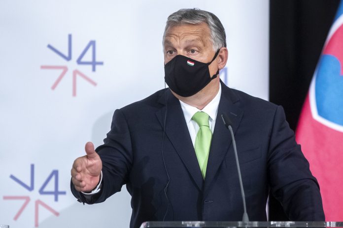 LEDNICE, CZECH REPUBLIC - JUNE 11: Hungarian Prime Minister Viktor Orban during the pressconference at the Visegrad Group (V4) summit at Lednice Chateau on June 11, 2020 in Lednice, Czech Republic. The Visegrad Group (V4), which includes the Czech Republic, Hungary, Poland and Slovakia, met for the first time since the coronavirus outbreak caused many countries across Europe to close their borders and restrict international travel. (Photo by Gabriel Kuchta/Getty Images)