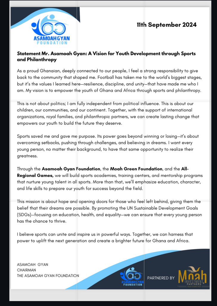 Below is the full statement from Asamoah Gyan