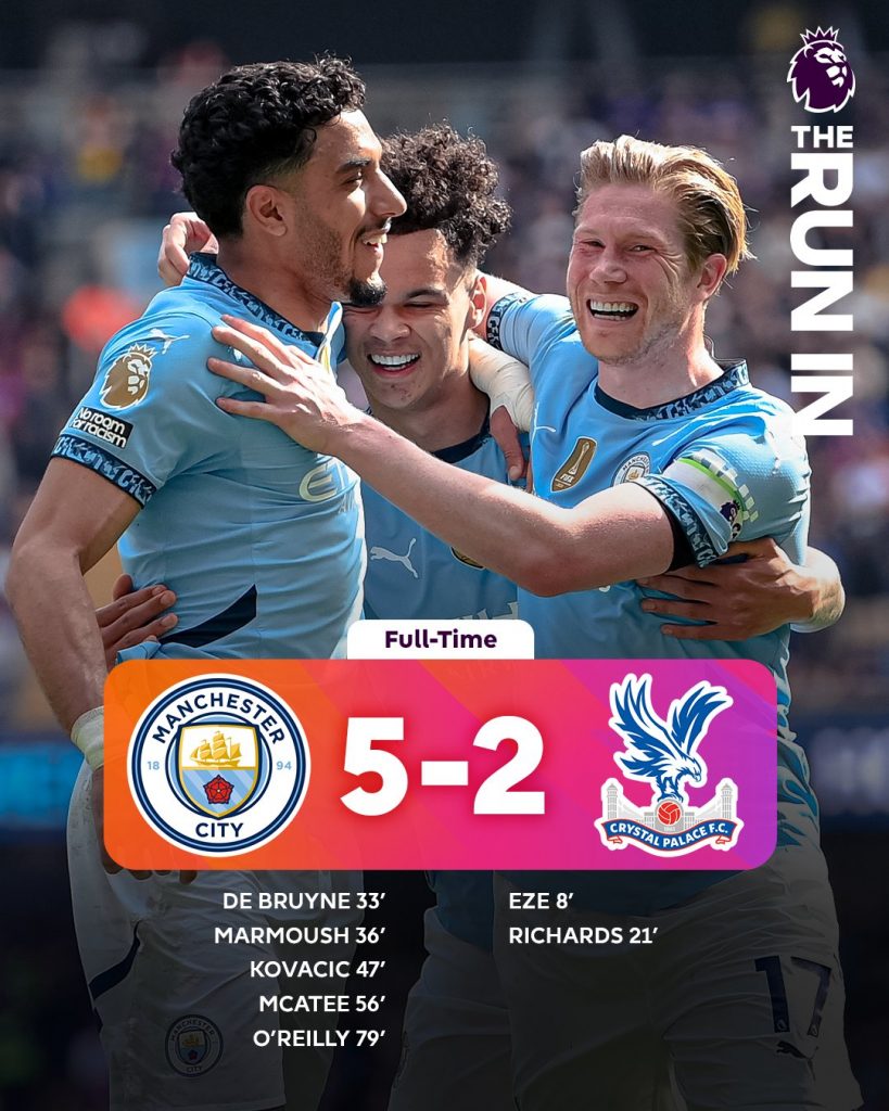 Manchester City produced a sensational second-half performance to overturn an early deficit and beat Crystal Palace 5-2 at the Etihad Stadium, thanks largely to a masterclass from Kevin De Bruyne.