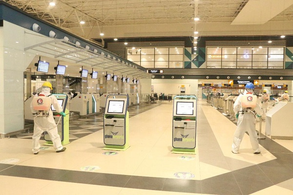 The monthly airports’ disinfection is a collaboration between the government and waste management company, Zoomlion.