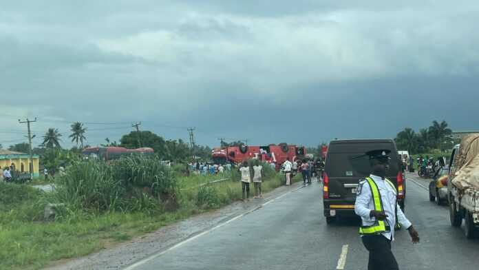 TV3’s Komla Klutse, who was at the scene, reported that the bus overturned in Teacher Mante.