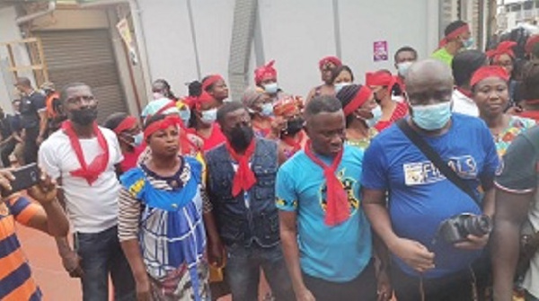 Clad in red and black attires, amid drumming and singing, traders, mainly located at the F-line part of the market on the first floor, told OTEC News’ Kwame Agyenim Boateng that there was no route leading to that area, preventing potential buyers from patronizing their products.
