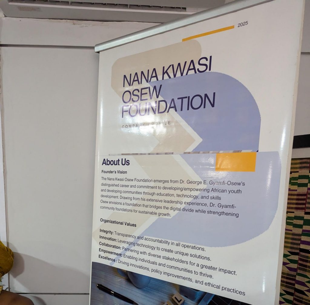 The Nana Kwasi Osew Foundation is a non-profit organization founded by Dr. George E. Gyamfi Osew, a renowned marketing professional and management consultant. The foundation’s mission is to empower African youth and develop communities through education, technology, and skills development.