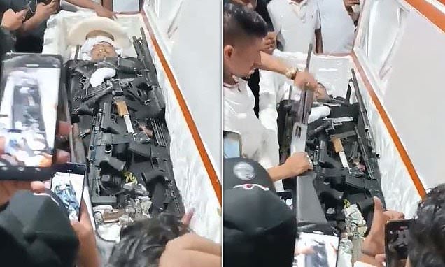 An Ecuador cartel boss was buried with dozens of gun in an attempt to ‘protect himself in the afterlife.’