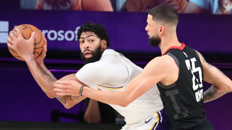 The Lakers, who led by as many as 30 points, seized control of the game in the third quarter. A bucket by Harden allowed Houston to creep within 65-59 but Los Angeles answered with a 18-2 surge after a putback dunk by Davis made it 83-61 with 5:01 left in the third.