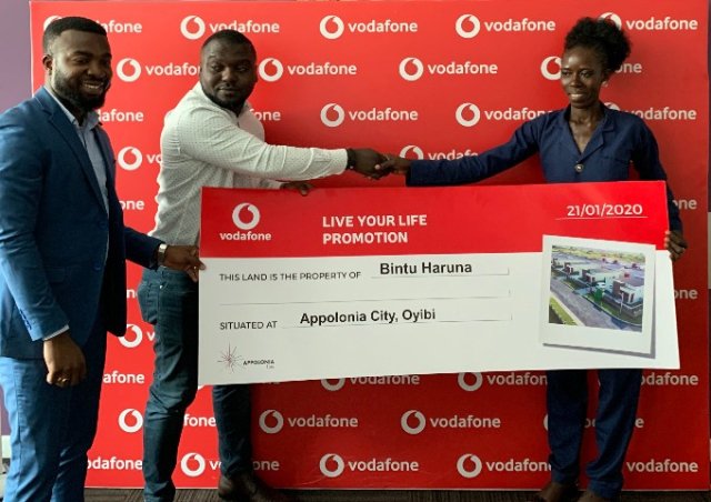 Vodafone Ghana has rewarded the first quarter winner of its ‘Live your Life’ promotion with a serviced plot at Appolonia City.