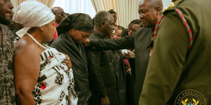 On Tuesday, August 12, President John Dramani Mahama paid a solemn visit to the families of three Ghana Air Force servicemen who tragically lost their lives in a military helicopter crash on August 6 in the Adansi Akrofuom District of the Ashanti Region.