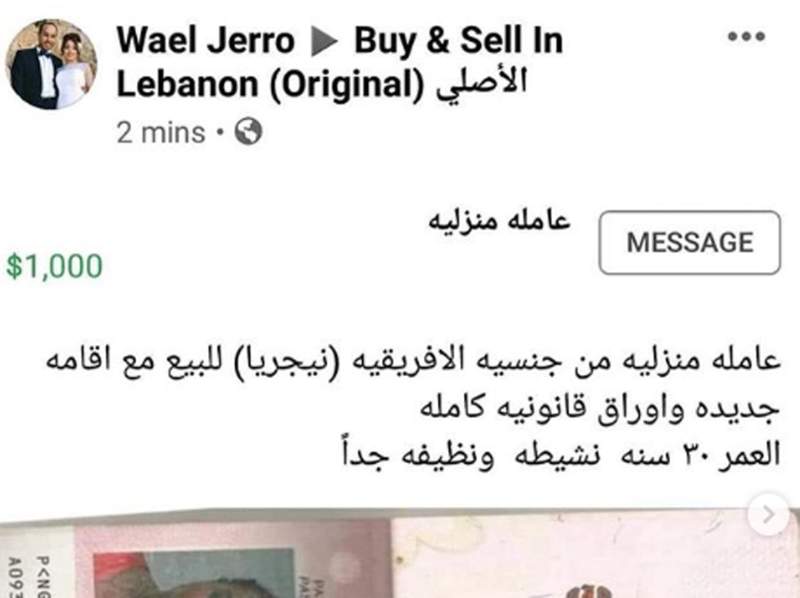 The statement also warned anyone who employed foreign nationals in Lebanon not to advertise workers for sale.