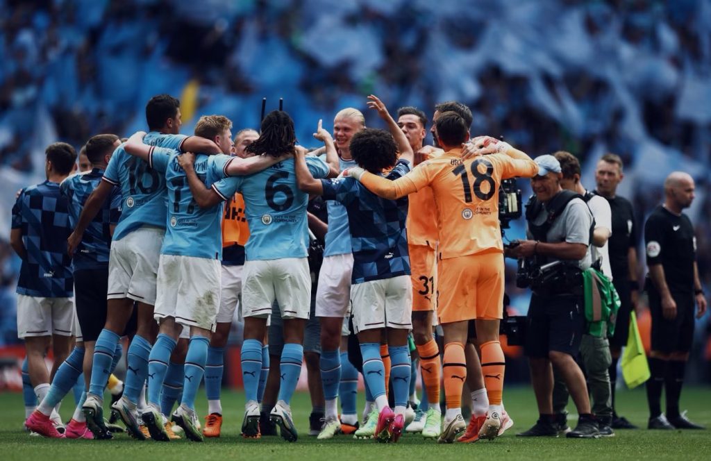 Gundogan was denied a hat trick by an offside flag and as the minutes ticked down City began to look edgy with United substitute Alejandro Garnacho curling a shot agonisingly wide while a goalmouth scramble in stoppage time ended with the ball bouncing off City’s crossbar.