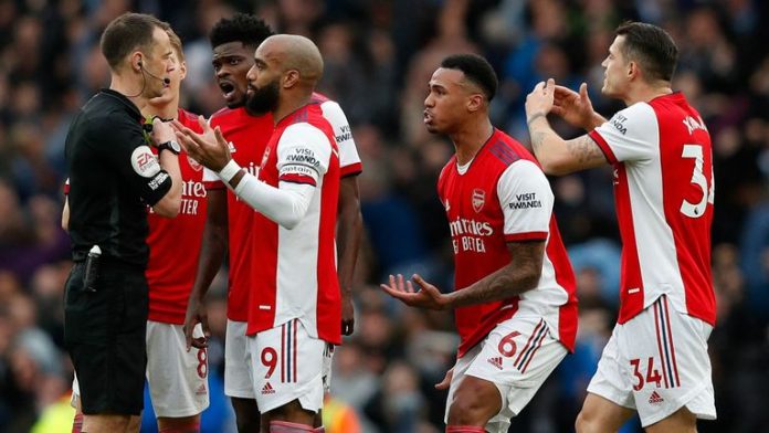 Bernardo Silva went down in the penalty area under a challenge from Granit Xhaka that was originally waved away by Stuart Attwell but he overturned his decision on the advice of VAR which led to Riyad Mahrez equalising from the spot.