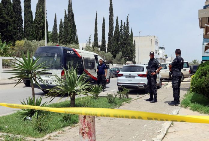 A man fatally stabbed a policeman on duty outside the Brazilian embassy in Tunis on Monday before police shot the attacker in the leg and arrested him, the Interior Ministry said.