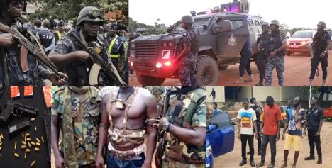 They eventually met the police, who stopped their vehicle and mounted a massive search, only to discover that heavy weapons, several foreign pistols, over twenty brand new mobile phones, and many others were retrieved from the vehicle.