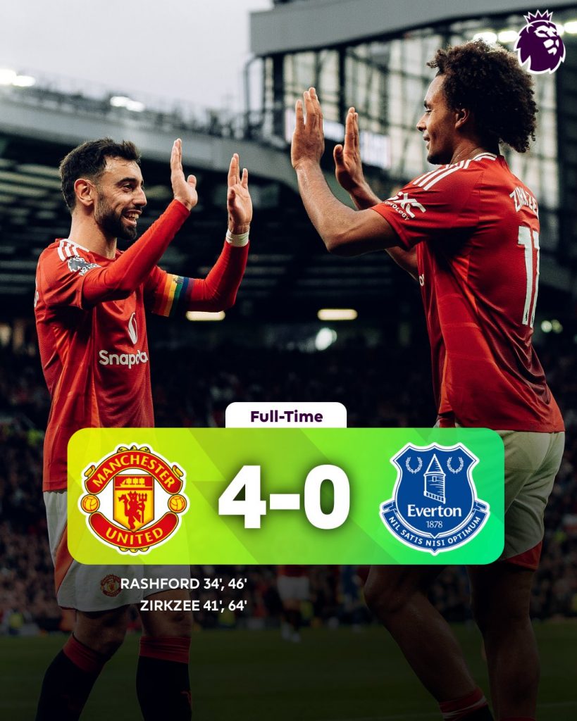 Manchester United showcased their best performance of the season as they thrashed Everton 4-0 at Old Trafford, marking a dream Premier League home debut for new manager Ruben Amorim.