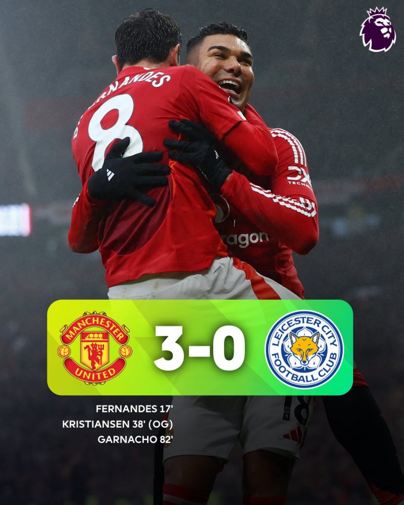 Manchester United concluded Ruud van Nistelrooy’s interim managerial tenure on a resounding note, dominating Leicester City 3-0 at Old Trafford.