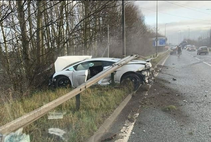 Pictures have surfaced showing the substitute goalkeeper’s £170,000 Lamborghini smashed through a barrier and into a hedge on the way to training at Carrington. Despite the shocking pictures of his car, which looks rather serious, the Argentine managed to escape the car crash without any injuries. In fact, he was was pictured standing beside his smashed up ride so we’re assuming he managed to get himself out of the vehicle without problems.