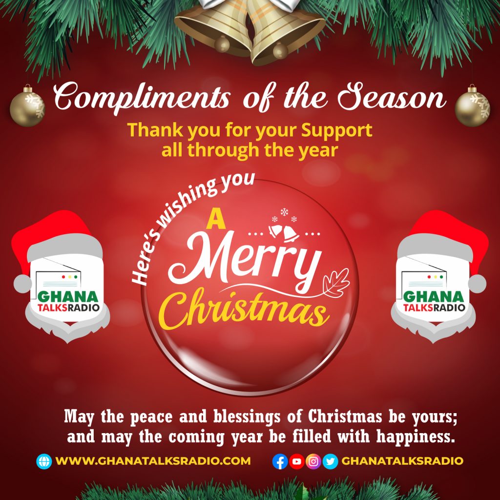 LifestyleInspirational Quotes MERRY CHRISTMAS to You and Yours; from all of us @ GhanaTalkRadio 25th December 2021 0 844 Share Facebook Twitter WhatsApp Linkedin Pinterest Telegram Viber Compliments of the season!