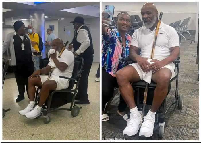 56-year-old Mike Tyson has been seen in a wheelchair at the Miami International Airport, generating new concerns for his health just weeks after morbidly declaring his death is “coming pretty soon”.