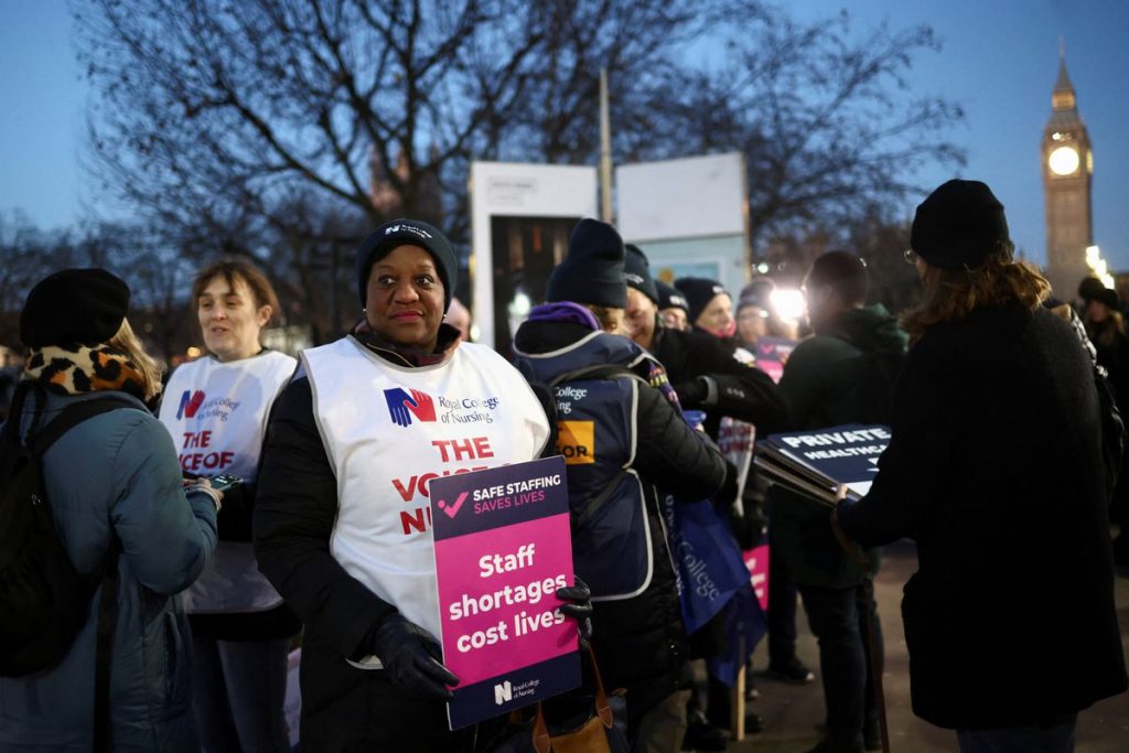 National Health Service nurses in Britain staged a strike on Thursday, their first ever national walkout, as a bitter dispute with the government over pay ramps up pressure on already-stretched hospitals at one of the busiest times of the year.