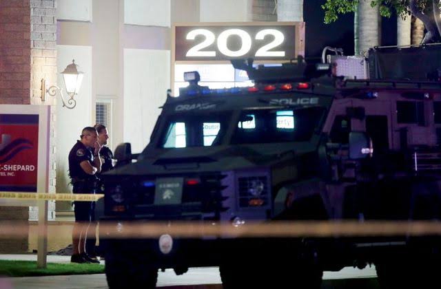 On Wednesday afternoon, the suspect entered the office complex of a business called Unified Homes that buys and sells mobile home and locked the gates to a courtyard behind him with bicycle locks, police said.