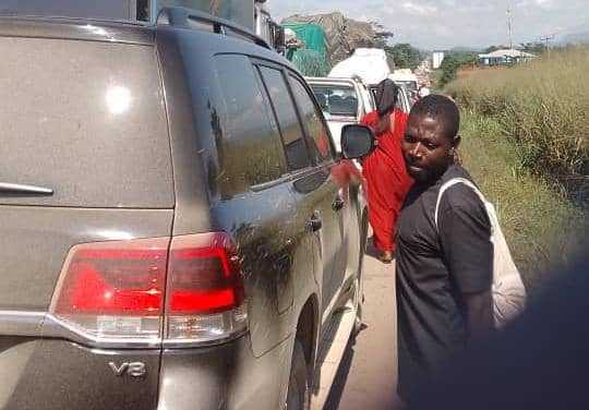 Driver Kwakye Badu, who had been stuck since 2 a.m., expressed his frustration, urging contractors to speed up the work.