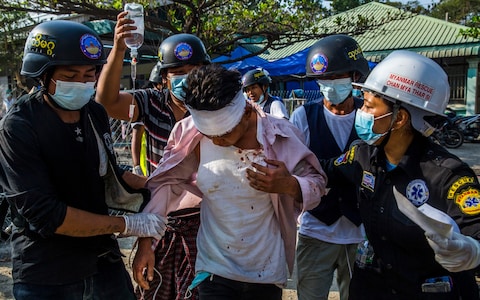 “They’ve blocked all the ways out,” Aye Aye Tint told Reuters from the town. “They used water cannon against peaceful protesters, they shouldn’t treat people like that.”