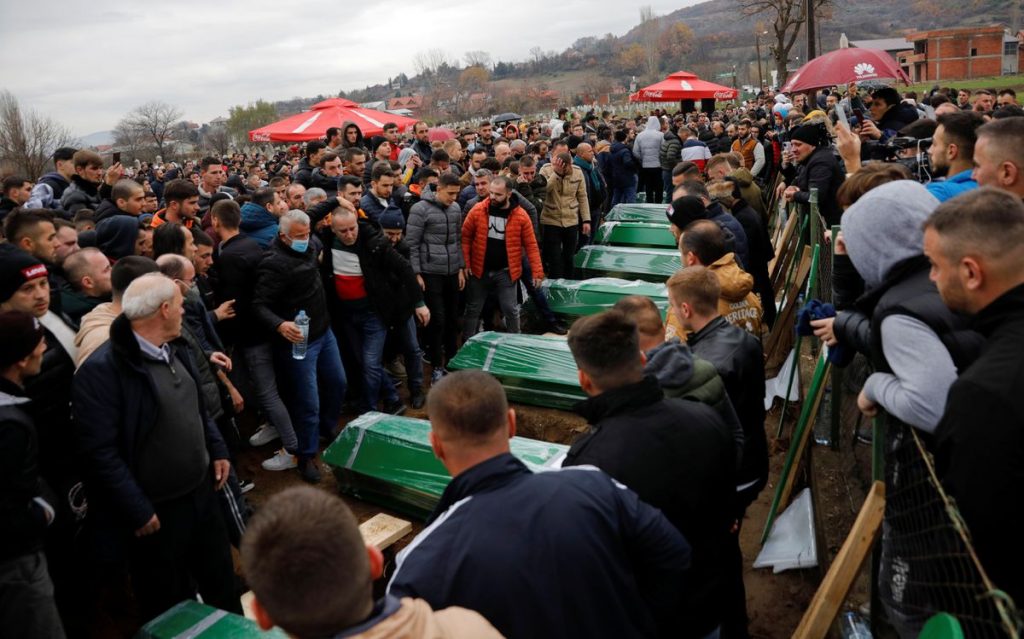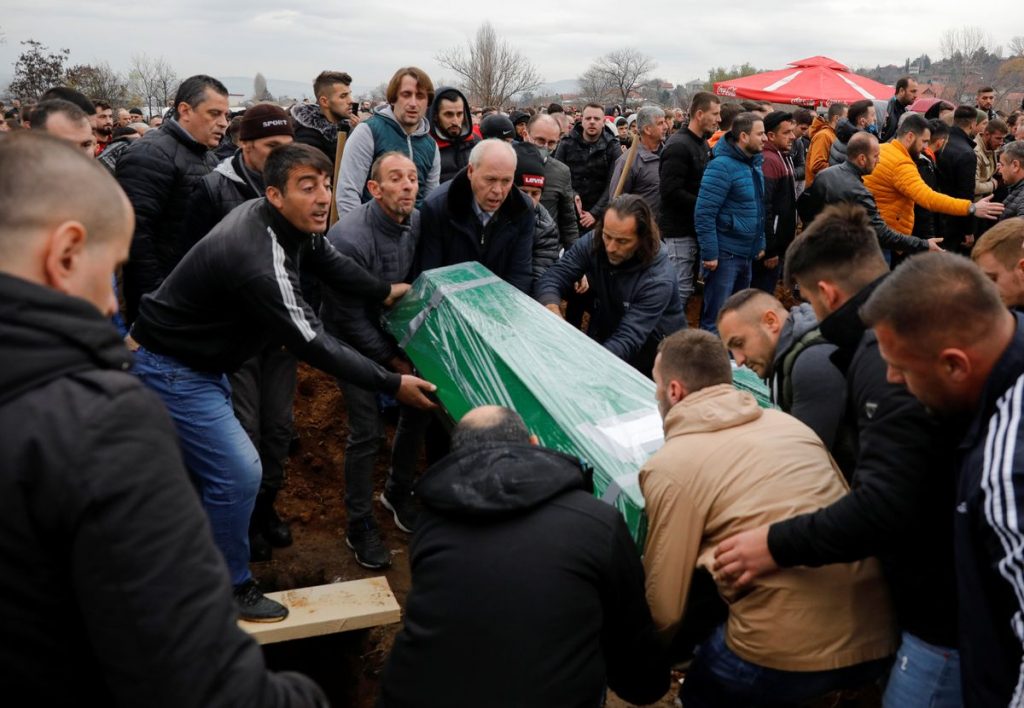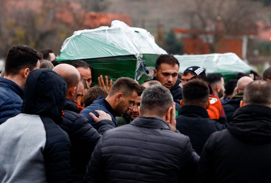Green coffins containing 10 victims were lowered into the ground at the Morane village cemetery – all four children of Enver Jahi, his wife, his sister-in-law and her two children, and two children of one of Jahi’s sisters – all from Morane.