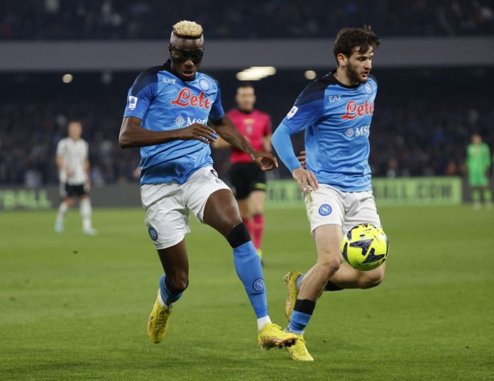 Napoli went ahead in the 14th minute, after Juventus goalkeeper Wojciech Szczesny saved a close-range bicycle kick by winger Khvicha Kvaratskhelia but failed to deny Victor Osimhen’s follow-up with a header.