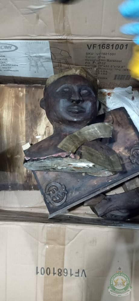 The Narcotics Control Commission (NACOC) on Wednesday 23, May 2023 seized Fifty-Four (54) slabs of compressed dried leaves suspected to be cannabis concealed in wooden artefacts with a gross weight of 12.67kg and with a street value of 127, 713.6 United States Dollars.