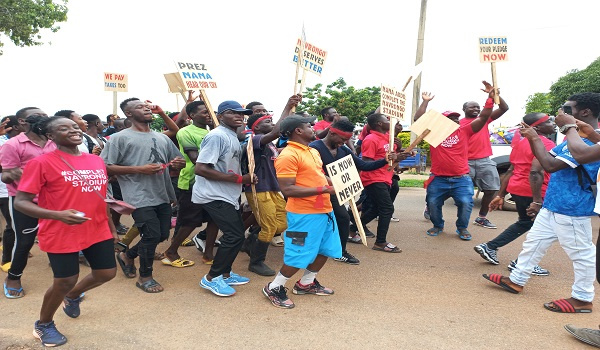 Some youth of Navrongo in the Kassena-Nankana Municipality have poured onto the streets of the town in a protest against the government for what they say is a failure on its part to complete the Navrongo sports stadium on schedule.