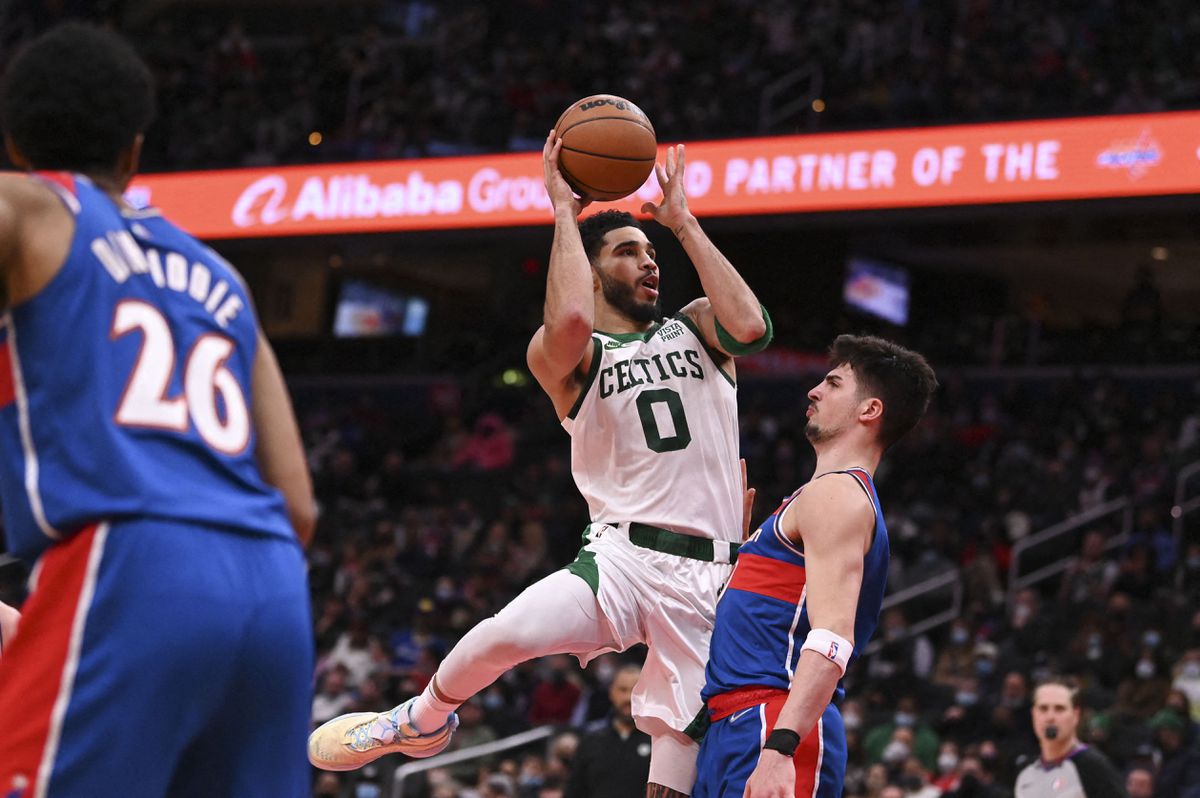 Tatum came into Sunday’s matchup having missed his previous 20 3-point attempts and going 0-for in each of Boston’s previous three games. But he hit his first four attempts against the Wizards and went 6 of 7 in the first half — the last of which came just seconds before halftime.