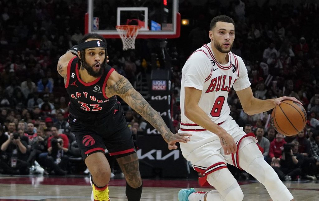 Zach LaVine scored a season-high 30 points and Nikola Vucevic contributed 15 points and 13 rebounds to boost host Chicago over Toronto. Chicago earned a split of the home-and-home, back-to-back set after losing 113-104 in Toronto on Sunday.
