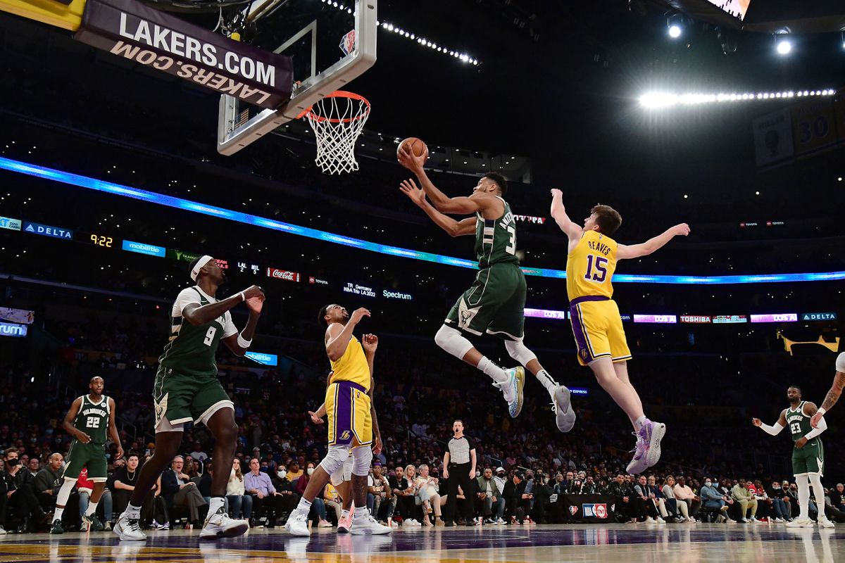 Giannis Antetokounmpo compiled 44 points, 15 rebounds and eight rebounds as the visiting Milwaukee Bucks extended their winning streak to four games with a 131-116 win over the Los Angeles Lakers on Tuesday.