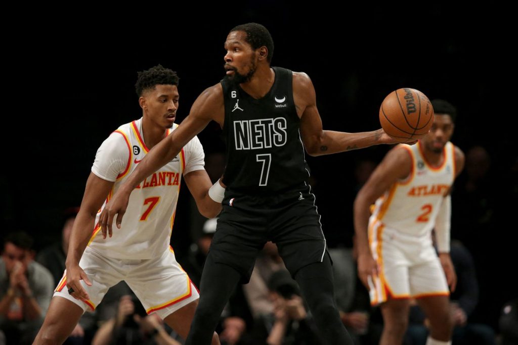 Kevin Durant scored 34 points, including the go-ahead 3-pointer with 3:17 remaining, and Brooklyn made enough plays down the stretch to seal a victory over Atlanta in New York.