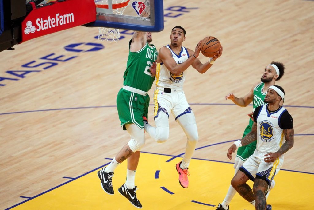 But 11 first-half Celtics turnovers gave the Warriors life and the tense first half ended with an Andrew Wiggins putback layup that gave the Warriors a two-point lead.